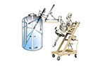 德高潔自動化化工反應(yīng)釜清洗系統(tǒng)是利用高壓水射流的動能將反應(yīng)釜內(nèi)壁及攪拌器表面上的堅硬垢物擊碎,從而剝離并清除掉。三維自動旋轉(zhuǎn)噴頭伸縮機構(gòu)安裝在反應(yīng)釜入孔上,伸縮桿伸進反應(yīng)釜內(nèi),伸縮機構(gòu)可采用手動、電動、液壓等控制,使伸縮桿在反應(yīng)釜內(nèi)伸縮和沿反應(yīng)釜內(nèi)壁周圍方向移動,伸縮桿在移動中可以避開反應(yīng)釜內(nèi)的障礙物。根據(jù)具體實際情況可選用2孔或4孔三維自動旋轉(zhuǎn)噴頭,當(dāng)三維自動旋轉(zhuǎn)噴頭水平旋轉(zhuǎn)時,水射流形成的旋轉(zhuǎn)力矩帶動噴嘴在垂直面內(nèi)旋轉(zhuǎn)。由于三維旋轉(zhuǎn)噴頭與伸縮桿的復(fù)合運動,高壓水射流可以覆蓋反應(yīng)釜內(nèi)任何位置,從而完成反應(yīng)釜的清洗。